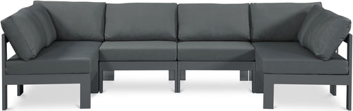 Meridian FurnitureNizuc Modular Sectional 6PC Waterproof Fabric Outdoor Patio Nizuc 120" Grey Water Resistant Fabric Upholstered 6pc. Outdoor Patio Modular Sectional...