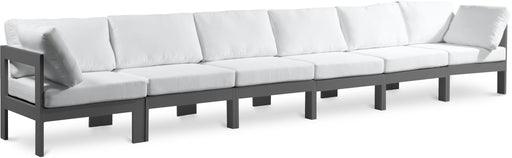 Meridian FurnitureNizuc - Waterproof Fabric Outdoor Patio Modular Sofa - White Aluminum Frame Nizuc 180" Grey Water Resistant Fabric Upholstered 6pc. Outdoor Patio A...