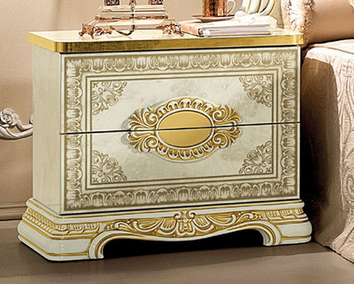 Camelgroup ItalyIn stockThis elegant nightstand showcases classic European-inspired design with intricate carved detailing and rich gold accents. The light-toned finish is...