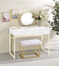 Adao - Vanity Mirror & Stool - Faux Fur, Mirror, White & Brass