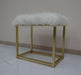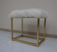 Adao - Vanity Mirror & Stool - Faux Fur, Mirror, Black & Brass