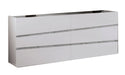 The luminous white and Carrara marble finish of the tops and the inserts between the drawer fronts are smartly coupled together.