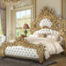Bernadette - Eastern King Bed - White Synthetic Leather Fabric & Gold