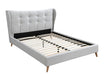 Every element from the wing back styled headboard, light gray upholstery, and button tufting exudes timeless elegance and contemporary comfort. The fully upholstered bed features a distinct and sophisticated headboard designed with wing back and button tufted details. Wooden leg gives a sturdy support but also a cozy vibe to the bed. Fashioned with a chic and elegant look, the Duran Bed will create a relaxing sleeping environment for you after a long day at work.