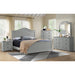 Enhance the look and feel of your bedroom with the Kona Panel Bedroom Set. This set includes features chevron pattern detailing for a touch of elegance. The curved headboard design add traditional flair to your space, while the nightstand comes equipped with a convenient USB port for easy charging. With knob and cup pull black hardware, bun feet, and top drawers lined with felt, this bedroom set combines style with functionality. Upgrade your decor with the Kona bedroom collection and give yourself a comfrotable night's rest with an organized and stylish space.