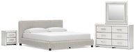 Zuraleus California King Upholstered Bed, Dresser, Mirror and Nightstand