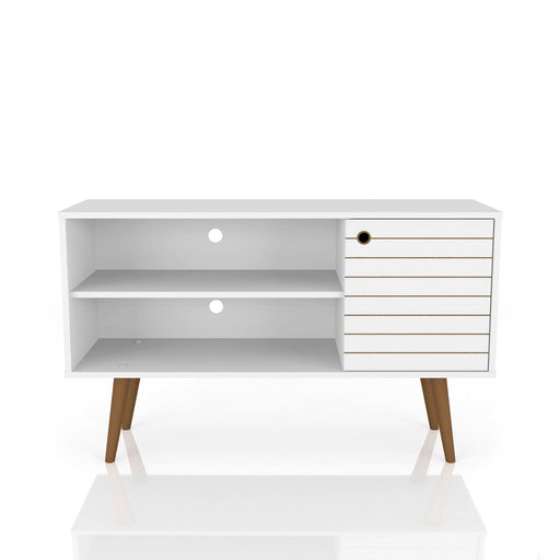 Manhattan ComfortIn stockThe Liberty 62.99 Mid-Century Modern TV Stand is a high quality, beautifully crafted, functional unit. Featuring two open shelves, and one large co...
