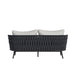 Deck your patio with the inviting style of the Bali Loveseat in Dark Grey. Built with high-quality aluminum framing optimal for outdoor use, this piece is as durable as it is cozy. The foam cushions are comfortably upholstered in weather-resistant olefin fabric, and the backrest bolsters visual appeal with its intricate woven detail. Tapered legs add a playful touch to the understated design, while the neutral tones effortlessly enhance the seat’s versatility. For a comfortable and stylish addition to your outdoor décor, the Bali Loveseat in Dark Grey delivers.