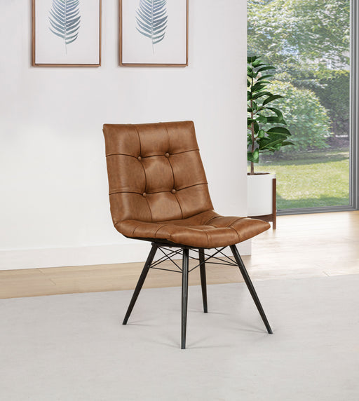 CoasterDining side chair brings a tailored, modern profile to the table with a gently reclined silhouette and a softly curved back. Button tufting shapes ...
