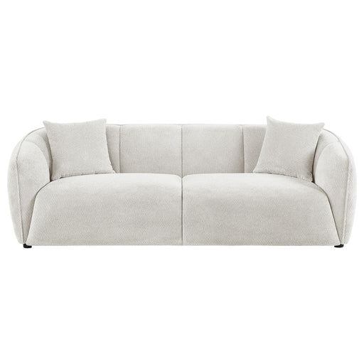 CoasterSofa with rounded shelter arms and textured chenille upholstery brings sculpted comfort to the living room. Gentle vertical channeling across the i...