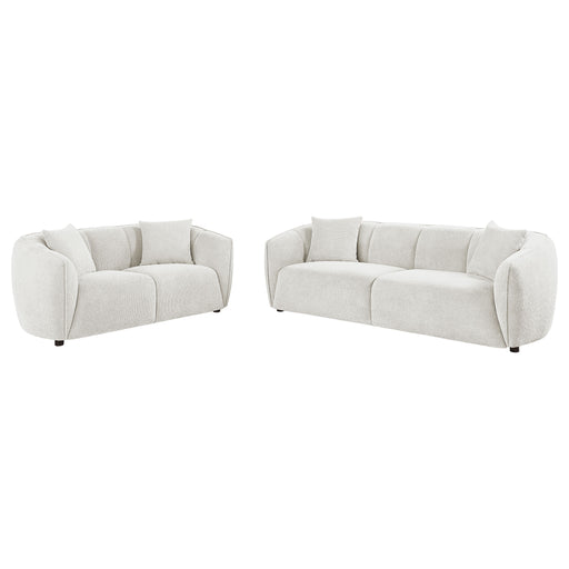 CoasterTwo-piece sofa set pairs a rounded shelter arm sofa and matching loveseat upholstered in textured chenille for a cohesive living room arrangement. ...