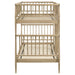 Maximize shared sleeping space with a twin-over-twin bunk bed featuring full-length upper guardrails and a centered ladder for steady access. A compact footprint keeps walkways clear while the stacked design suits busy kids’ rooms. Supportive slat decks let this bed frame hold mattresses directly with no foundation needed. Crafted from rubberwood and engineered wood, the bunk bed shows clean end panels with vertical slat detailing. When plans change, it separates into two individual beds for siblings, sleepovers, and flexible guest use.