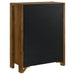 • Antique brass bar pulls add a classic accent that stands out on warm brown wood grain