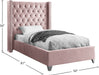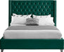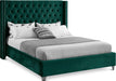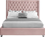 Elegant and eye-catching, the stunning Aiden Bed from Meridian Furniture is the perfect addition to any bedroom. velvet covers the deep tufted design. A beautiful wing bed design is complimented by hand applied nail head details. Strength and beauty is guaranteed with a solid wood frame and stainless steel legs.