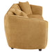 Sofa with rounded shelter arms and textured chenille upholstery brings sculpted comfort to the living room. Gentle vertical channeling across the inside back and a low contemporary profile keep the silhouette tailored while wide seat cushions encourage relaxed lounging. A wood and plywood frame supports foam and polyester fiber cushioning for balanced comfort, while dark brown legs add lift and contrast to the warm mustard upholstery in modern homes and open living spaces.