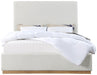 Alfie Cream Linen Textured Fabric Upholstered Queen Bed