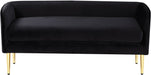 Sit or recline in exquisite comfort on this Audrey bench from Meridian Furniture. The velvet is smooth and soothing to touch, perfect for relaxing after a long day of activities. The contemporary design suits modern households while the 20-pound weight makes it easy to move around as needed. Sit the bench in the living room for extra seating or by the front door for putting on shoes.