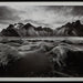 If you have your sights set on a striking landscape, this wall art is a natural wonder. Staggeringly beautiful, the framed black and white print showcases majestic mountains and a meandering stream. This moody and marvelous piece adds an air of dramatic beauty to your modern decor.