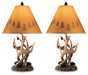 | Details | Set of 2 table lamps, Richly rustic base crafted of poly resin, Paper silhouette shade with decorative design, Each table lamp takes 100-watt max bulb or LED equivalent; UL Listed, On/off pull chain switch, Clean with a soft, dry cloth, Assembly required | |