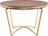 Blend traditional with modern when you bring this Eleanor dining table into your space. This table catches the eye with its woodgrain natural walnut veneer top that rests sturdily on its brushed gold base. Offering legroom aplenty for your guests, this table provides a lovely contrast that is well at home in both modern and classic decor settings. Pair your favorite chairs for a look that is hard to ignore.