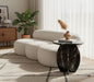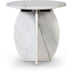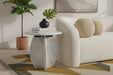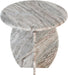 Lend your room a refined, elegant look with this Formentera end table. This table oozes sophistication from its wavy marble with light grey veining construction to its uniquely shaped base. The perfect end table for adding a modern touch to your space, this piece steals the show, doubling as part art, part utilitarian furniture must-have. And it's crafted by hand with genuine marble, so you can trust it to last for years if not generations of use.