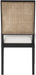 Give your dining space a traditional makeover with this Butterfly dining chair from Meridian Furniture. Its solid rubber wood frame features a sleek black finish, and its cushion is upholstered in soft cream linen-like polyester fabric, providing comfort and complementary colors to your dining table. Its natural cane back is reminiscent of a mid-century design, so you can relax in style as you dine, and making this piece right at home in any living space.