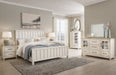This bedroom set elevates the art of modern farmhouse design. Its two-tone aesthetic blends antiqued white and light grayish brown for added charm. Framed drawer fronts and dark rustic bar pulls lend a country feel. Conveying a feeling of relaxed comfort, this set is sure to carry you away to a dreamy time and place.