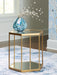 | Details | Made with glass and metal, Frame with goldtone finish, Glass top, Mirrored inset, Minor assembly required | |